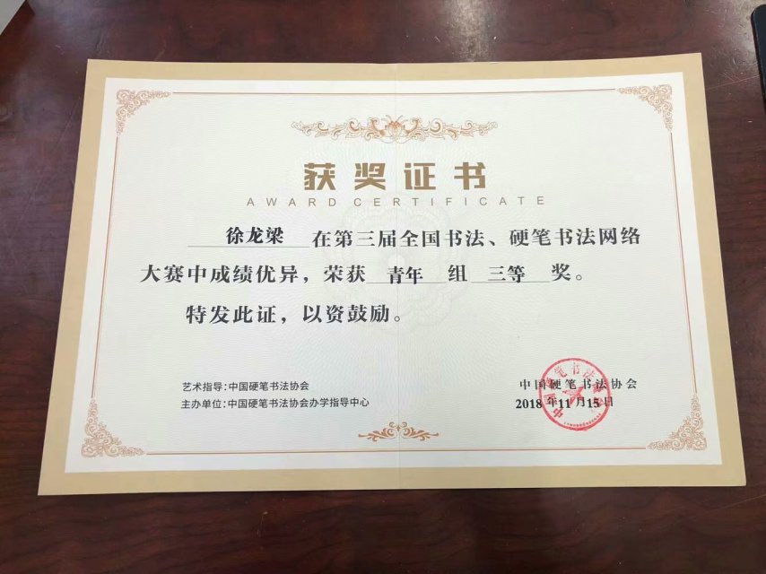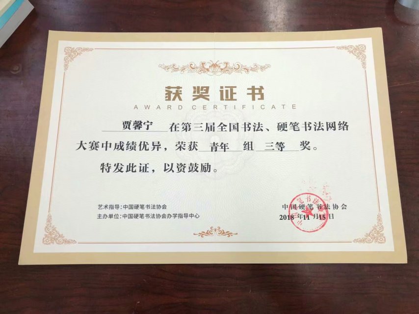本次大赛是由中国硬笔书法协会办学指导中心主办的第三届书法、硬笔书法网络大赛,是面向全国号召与征集书法作品的全民参与性大赛。旨在弘扬中华优秀传统文化,践行大书法,比赛紧紧围绕张华庆主席“服务、团结、普及、提高、发展、繁荣”的指导思想,全面展示当代书法、硬笔书法的艺术成就。自9月份学院参赛以来,学院海墨书法协会积极组织协会会员准备参赛作品,经反复酝酿、修改、打磨、,学院学子书法作品最终在决赛中脱颖而出,取得包括一二三等、优秀奖等所有奖项在内的骄人成绩。